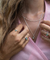We have chosen to use pure 925 sterling silver without Rhodium plating because we think that silver only becomes more beautiful as it ages. Silver can react to various substances causing it to oxidize/darken. If your jewelry has oxidized we advise you to use this method for chains and hoops: Silver cleaning with baking soda (watch video) and for rings, pendants and charms with gemstones: Use our Polishing Cloth. Silver jewelry that is not used and stored together with other metals or in a humid environment will oxidize faster. When you’re not wearing the jewelry, we recommend you to store it separate from other jewelry in a closed fabric or plastic bag. This way you avoid oxidation of the jewelry.