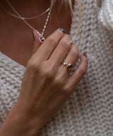 Klart vi har valt att jobba med äkta 925 Sterling Silver. Vi har också valt att inte ha Rhodiumplätering på våra silversmycken för att vi tycker att den äkta silverfärgen är vackrare utan och för att vi älskar hur silver åldras.