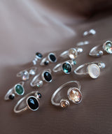 En öppen festlig ring med ovala stenen "Ellipí" på ena sidan & stenen "Lilla" på andra. Här skräddarsyr du själv din unika stenkombination!
